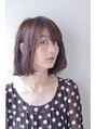 あご下のレングスに設定したワンレングスのボブスタイルです。毛先に無造作に動く様にワンカールのパーマをかけて、カジュアルな印象にしました。前髪は、目の上ギリギリにカットして束感がでるように量感調整しました。