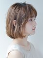 骨格に合わせ、顎下の長さにカットした前下がりボブ。ゆるくワンカールさせアンニュイな感じを出しています。【気に入って頂いたスタイルは、ブックマークをしてご提示ください】