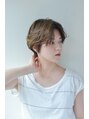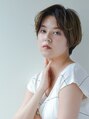 センターパートにして、サイドは耳が隠れる長さに設定。前髪からトップには段をいれて軽くしています。襟足スッキリのショートスタイルです。パーマは、柔らかく見えるようなニュアンスにかけています。