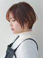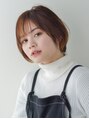 丸みのあるショートボブスタイルです。サイドは、耳下に設定。襟足は、首に沿う長さを残します。前髪は、目にかからない長さに斜めにカットします。丸みのあるシルエットですが、バックのウェイトを上げることで、可愛すぎない印象です。