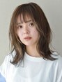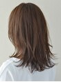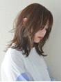 ひし形シルエットのミディアムレイヤースタイル。肩下に長さを設定。ひし形のシルエットになるようにレイヤーでカット。毛先に外はねワンカール、トップは揺れるようにパーマをかけています。