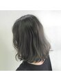 重めロブ。表面にのみレイヤーを入れて動きが出るようにカット。重みがたまりやすい所にはインナーレイヤーをいれて量を取り除きます。一度ベースを明るくしてから青味の強いサファイアを再度カラー。