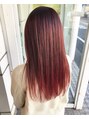 全体にハイライトをしっかりといれた後チェリーレッドをオン。ほんのりピンクもミックス柔してやわらかい印象に。シャンプー台でカラートリートメントで更に彩度を高めてます。※デザイン・行程によってご予算変わりますので確認ください。