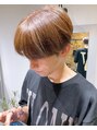 メンズマッシュスタイル。ベースのカラーは10トーンのシナモンベージュ。フロント表面付近のみにラフ気味にハイライトを。※ハイライトは別料金になります。