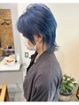 ウルフカット。カラーは鮮やかなブルー。このスタイルはブリーチ2回位。ブリーチメニューはご相談(回数・ご予算など)あればお電話でご連絡ください。