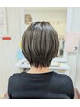 ボブヘアからウルフを目指し、マッシュウルフショートに仕上げています。ハイライトにカーキグレージュで大人かっこよく。