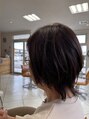 ソフトウルフにする事で、トップには、ボリュームがでて、襟足は、シャープにスッキリとした、動きのあるスタイルです。若々しくみえます。