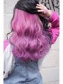 広めに取ったインナー部分を2回ブリーチ後、パステルカラーのキャンディピンクとライトパープル、上の被さる部分にはダークグレーを乗せて思いっきり可愛いインナーデザインに◎*ブリーチ回数は要相談。