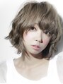 前下がりのグラデーションボブベース。トップと顔まわりにレイヤーを入れる。直毛の場合はデジタルパーマを施す。平間きで1.5回転巻く。カラーはベージュアッシュでグラデーションで遊びをいれて。