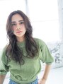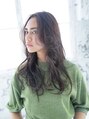 ロングヘアのゆるふわウェーブ スタイル!ロングの王道でストレートよりもウェーブがあることでやわらかさが出て女性らしさが引き立ちます!センターバングなのでさらに大人クール感もでて印象を変えたい方にはおすすめなロングスタイルです!【稲毛】