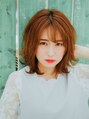結べる長さの鎖骨レングスでレイヤーを入れてひし形シルエットに!!カラーは明るめのオレンジ系でツヤ感と軽さを出しています。前髪は薄めにして抜け感を◎レイヤーを短めに多めに入れているので動きがとても出るスタイルです!【稲毛】