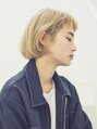 ハイトーンベージュのショートボブスタイルです!全体的に重めですが、前髪を眉毛上に切ることと、ハイトーンにすることで明るい印象を与えてくれます。ストレートアイロンだけで簡単に来まするタイルなのでオススメです!【稲毛】