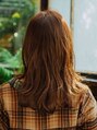 カットは鎖骨下のミディアムスタイル。前髪は少し長めに切ってラフに巻いてあげることで大人っぽい印象になります。カラーは明るめのオレンジ系にすることで、黒髪とは違って軽さが出て明るい活発な印象になります。【稲毛】
