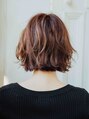 切りっぱなしラインをしっかりとのこしたボブ スタイルです。顎ラインの切りっぱなしだとガーリーな雰囲気になりがちですが、表面に前下がりになるようにレイヤーをいれることで大人かわいいスタイルになっています。【稲毛】