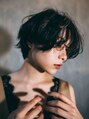 ハンサムボブにハイライトを入れたおしゃれスタイルです!!前髪は長めでセンターパート、ハイライトは表面に多く入れ、動きが出にくいスタイルに動きをプラス!全体は染めたくない方におすすめです。デザインはスタイルに合わせて。【稲毛】