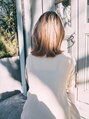 センターパート×ミディアムは大人女性に人気なスタイルですが、ハイトーンのヘアカラーと組み合わせることで、個性的な雰囲気にも仕上げることができます!また、根元を暗く残すのがポイント!よりお洒落感を出すことができます【稲毛】