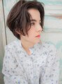 前下がりのショートボブ スタイル。前髪をコテやストレートで動きを出すことによっていろいろな印象になります。ショートスタイルのかたで印象を変えたい方におすすめ。スタイリングしやすく家でもセットしやすいです。