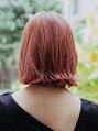 流行りのオン眉ボブに赤のカラーを入れたオシャレボブ大きめカールのパーマをプラスすることで、強すぎない女性らしさを出しています少し人とは違うおしゃれ感を出したい方にオススメスタイル!ブリーチカラーで透明感をプラス!【稲毛】