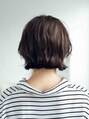 首半分くらいのワンレングスボブにトップだけレイヤーの入れたスタイル。ネープの毛量をしっかりとって、くびれやすくしました。カラーは軽さが出るようにダブルカラーで透明感のあるアッシュベージュに染めました。【稲毛】