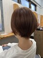 直毛の髪質でも柔らかい質感の上品なショートカット。アイロンを軽くスルーしてオイルで仕上げるだけの簡単スタイリング。