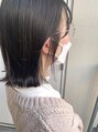 ブリーチ一回の、ナチュラルなグレージュインナーカラーです♪色味も落ち着いているので、もちがよく派手すぎない印象です。カットはぷっつり外ハネボブで施術しております。