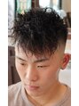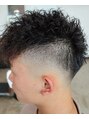 スキンフェードにトップはやや強めのツイストパーマで夏らしいスタイルです