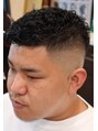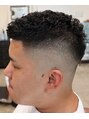 トップをアイロンでパーマしたウェーブのフェードスタイルです。