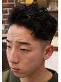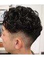 トップは長めでパーマ×サイド、バックはフェードの外国人風スタイルです。