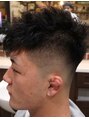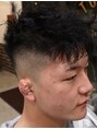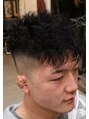横、後ろはフェードでトップは緩めのツイストパーマあてたラフなショートスタイルです。