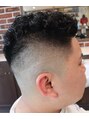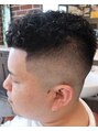 トップにカーリーパーマあてて、横、後ろはスキンフェードスタイルです。
