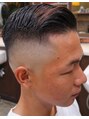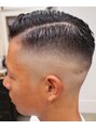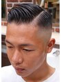 粗いメッシュコームで仕上げたパートスタイルにスキンフェードです。