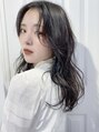 黒髪に見えて光が当たった時クリアなグレージュが発色して、髪を柔く見せてくれます。さらに肌をより白く綺麗に見せてくれる効果も。カットはバングが巻いた時頬にかかる長さですこし色っぽい印象に。