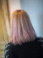 ブレーチ2回後に耳下にインナーカラーでピンクパープルをオン。動きをつけるとちらみえするカラーがおしゃれなスタイルです☆黄色味が抜けるくらいまでブリーチすると透明感がでてキレイです☆[橋本駅]
