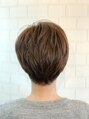 スタイリングらくらくショートボブ。トップにレイヤーを入れて分け目をなくし、ハンドブローでもしっかりまとまる大人ショート。カラーは白髪染めなのに自然な明るさをだせます!!