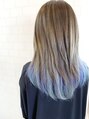 デザインブリーチを施した後に、毛先をメインに淡いビビットなデニムブルーをいれてあります♪表面には毛先との馴染みがいいよう、細目にハイライトをたくさん入れるのがオススメ!!夏にむけてカラーチェンジしてみてはいかがでしょうか(^^)/