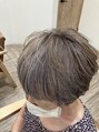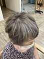 白髪にハイライトとローライトを混ぜた白髪を生かしたデザインカラーです。白髪は隠すのではなく生かして楽しんでいただけたら、と思います。