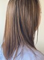 ローライトとハイライトを細かく織りなすように入れて、立体感と髪のツヤを演出。
