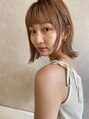 明るいベージュカラーは外ハネボブでスタイリッシュに。