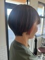 丸みショート×オレンジイヤリングカラー