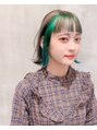 デザインカラー 外ハネボブ グリーン ベージュ 大須