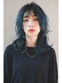 顔周りを短く切り込んだウルフヘア。デザイン性が高く、結んでも可愛いスタイルです。カラーは根元はブラックで、毛先はブルーカラー。