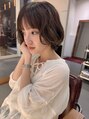 ショートボブにニュアンスパーマをプラスし、抜け感と女性らしさを演出。映画のワンシーンのような、お洒落で上品なヘアスタイルに仕上げます。