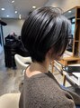 ショートレイヤー前下がりショートレイヤーをベースに、フロント側からもカットして、伸びてきた時に前髪が長くなりすぎない長持ちカット。襟足の収まりボリュームの出し方はベースカットで調整するので、それも、長持ちの秘訣