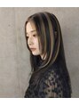 表面にだけ入れた太めのブリーチハイライトで人とは違ったデザインカラーとしてオススメのデザインカラーです!ハイライト部分以外はコントラストをつけたいので黒めの色で引き締めています。
