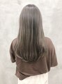 全体に細かくハイライトを入れ、暗めのオリーブグレージュをオン!ケアブリーチとトリートメントでツヤ感を損ねず透明感を作ります☆