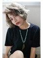 カジュアルフェミニンは【藤岡なおき】にお任せください♪ブラントカットの切りっぱなしボブに無造作カールをプラスして今っぽく仕上げました!ブリーチ×イルミナカラーで透明感たっぷりの外国人風カラーにしました♪