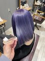 全頭ブリーチ1回の明るめベースに濃いめのパープルカラー!色落ちも綺麗で可愛いミルクティー色になります♪是非お任せ下さい♪