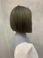 全頭ブリーチしてからのアディクシーカラーでオリーブ系カラー赤みをおさえた可愛いカラーです! 切りっぱなし bobも凄くお似合いでした!