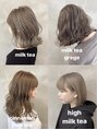人気のミルクティーカラーたち。ブリーチしてもナチュラルに。それぞれのニュアンスカラーをオリジナルの配合で。お好みのミルクティーカラーにしちゃいましょう☆ ケアブリーチやトリートメントも各種ご用意してますので、合わせてご相談ください*
