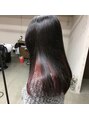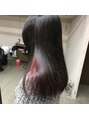 ブリーチを最低でも2回は必要なインナーカラーです。しっかり色を抜くことがポイントです。ワインレッドのカラーはトナーをしながら深みのある色味に仕上げています。
